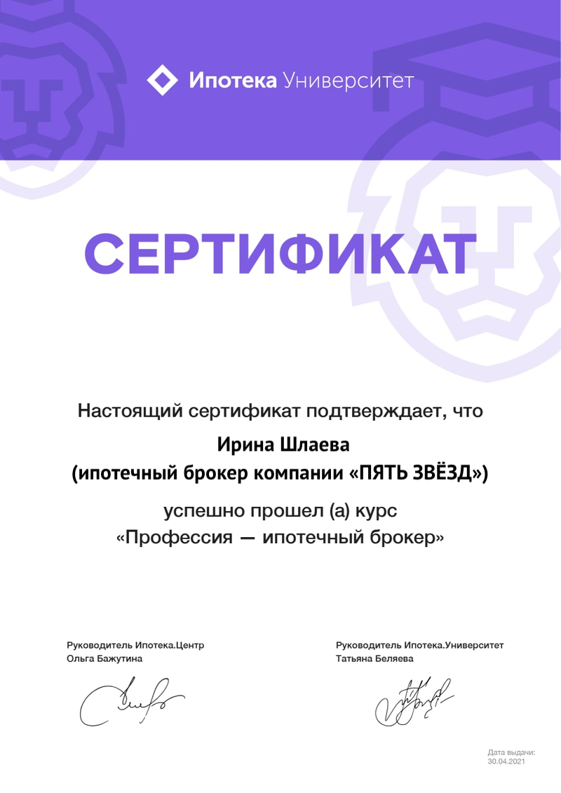 Спасибо за Ваш профессионализм, доброжелательность, порядочность, тактичность, скорость принятия решений, взаимодействие с сохранением безопасности и интересов всех участников сделки!
